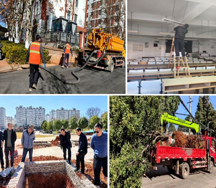 物业管理部积极推进西校区绿美校园建设,移栽及购植苗木800余株,恢复地表植被约2000平方米;开展校园环境卫生专项行动,修补破损路面,清理排水沟及卫生死角,对所有公共场所进行彻底清洁;更换维修教学楼窗帘、课桌椅、门窗、水电设施,清洁翻新学校标识标牌。